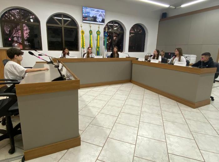 Na noite de ontem, na sede do Poder Legislativo, ocorreu mais uma sessão ordinária do Programa Câmara Mirim, que reúne jovens estudantes com o objetivo de incentivar a participação cidadã e o protagonismo juvenil.