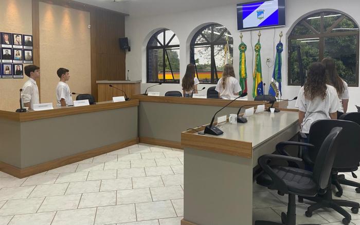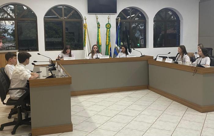 Na noite desta quarta-feira, 12 de novembro, sob a presidência da vereadora mirim Antônia Beuren, ocorreu mais uma sessão ordinária do Programa Câmara Mirim de Cruzeiro do Sul. O encontro, realizado no plenário da Câmara de Vereadores, contou com a participação dos jovens parlamentares, que apresentaram diversas proposições voltadas à melhoria da qualidade de vida no município e ao bem-estar da comunidade.