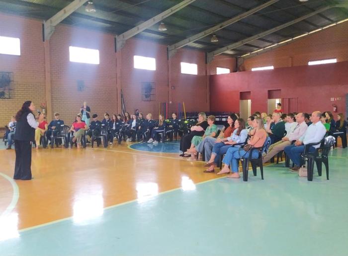 O evento, realizado no ginásio da instituição, marcou um momento histórico para a comunidade escolar. Com o tema "Assim, transformei minha vida!", a palestra ministrada por Maurício Rech inspirou os alunos ao abordar superação e protagonismo juvenil. A solenidade celebrou o crescimento expressivo da escola, que dobrou seu número de estudantes nos últimos quatro anos, atingindo a marca de 207 alunos matriculados e consolidando a oferta de turmas até o 1º ano do Ensino Médio.